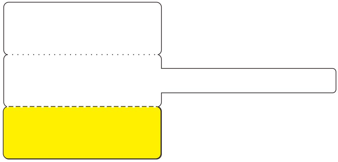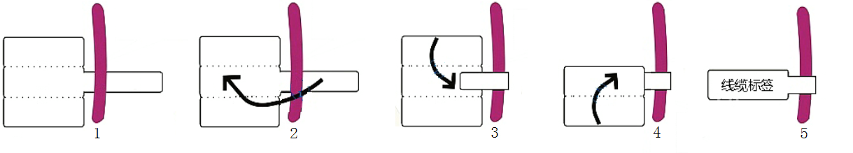 2、因为该标签有3个对折打印区,则可以通过上下打印区的不同交替粘贴实现现场线缆标签的不同应用需要。下图所示标签举例说明:先折最上打印区后再粘贴最下黄色打印区,则呈现出来的是黄色效果,反之粘贴出来效果就是一个白色的标签。