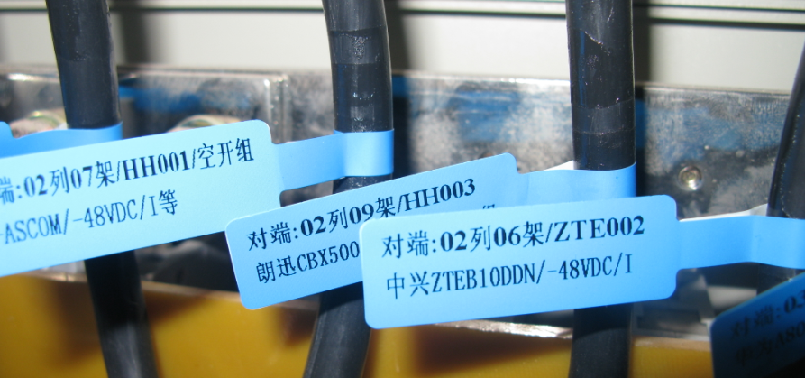 因通信机房内各类线缆密集、种类繁多,且各类线缆直径均较细小,如尾纤、2M线、网线、电源线等,同时根据实际应用情况考虑到设备上各类缆线排列密度较大、线距较小,为便于维护和方便使用,理念推荐使用旗形线缆标识对各条线缆进行详细标注。